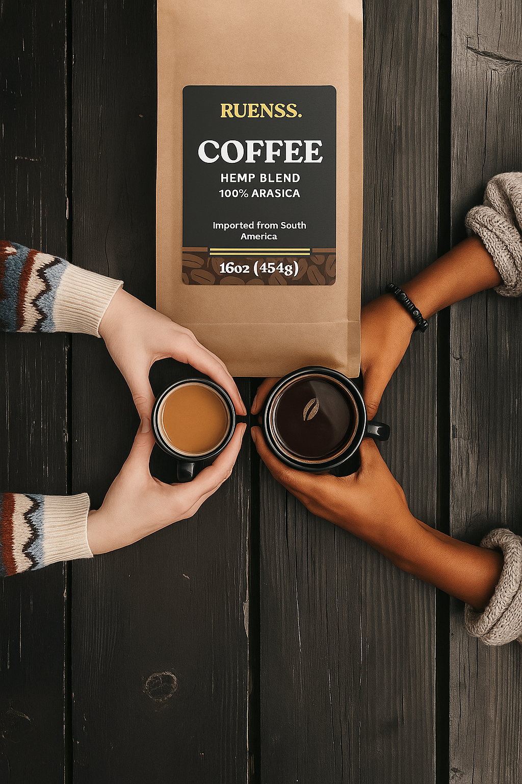 En Ruenss Coffee, creemos que cada taza es una experiencia que trasciende el sabor. Seleccionamos cuidadosamente granos de las mejores cosechas de Sudamérica, cultivados  y tostados artesanalmente para conservar su aroma, suavidad y carácter único. Café Arábica 100% con proteína de hemp vegetal